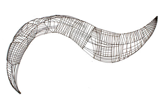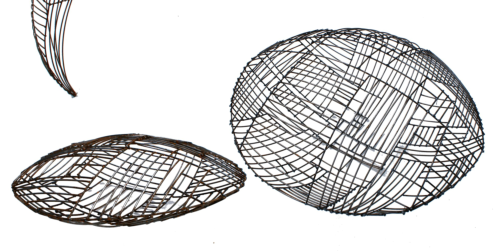 Die dreidimensionalen Drahtobjekte sind aus 3mm Stahldraht geschweißt. Die Größen variieren: